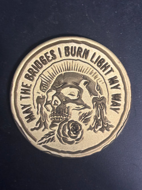 Finished with a rugged antique patina, the design has depth and character that makes it stand out whether displayed, collected, or carried as an everyday pocket token. The textured background and raised artwork emphasize the sculpted details, giving the coin a strong, classic challenge-coin feel.